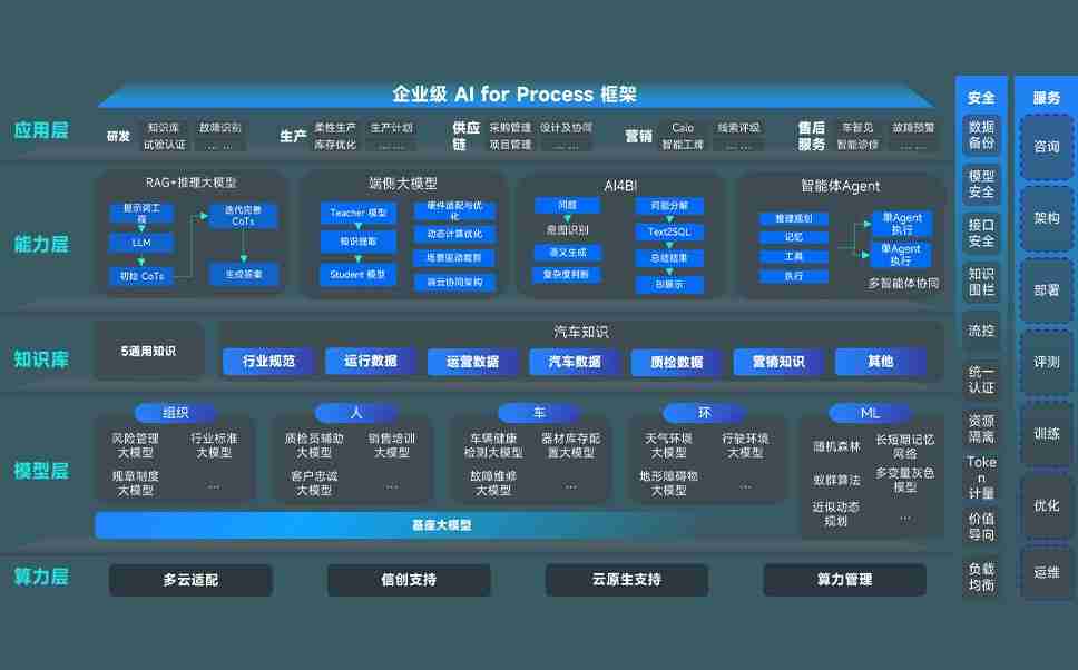 NG娱乐问学智车解决方案是一套基于AI技术的汽车行业智能化系统,,,,覆盖从底层算力到顶层AI应用的全栈方案。。。。方案由算力层、、模型层和应用层组成:算力层,,,,方案支持多种一体机配置,,,具备云端灵活部署、、、、多云适配以及动态优化计算资源的能力;模型层,,,NG娱乐问学平台版提供了企业级AI应用一站式构建与管理平台,,,支持基于后训练强化技术的汽车企业专属模型的训练、、、、评测和运营;应用层,,,NG娱乐问学DeepSeek版提供包括超级员工、、、、智能招采、、、智能营销、、智能客服、、、、AI for BI等一系列解决方案,,,可助力汽车行业实现数字化转型,,,让管理更智能、、响应更敏捷。。。。